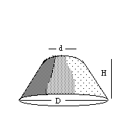 diameter D, top diameter d and height H is calculated as: V = H x (D^2 + d x D + d^2 ) x (PI / 12) |